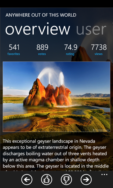 Search allows you to search 500px photos for keywords and returns an image collection that you can mark as a favorite or pin the search to your start screen just like any other image collection.