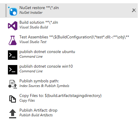 - Updated the VSTS build to include two command line tasks to do the publish for both Windows and Ubuntu