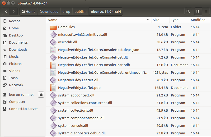 I left in the original “Copy Files to” step in the build so that I had access to everything that was built as things progressed. But to run things I just need the folders under the “publish” directory - Log in to Ubuntu and download the publish directory